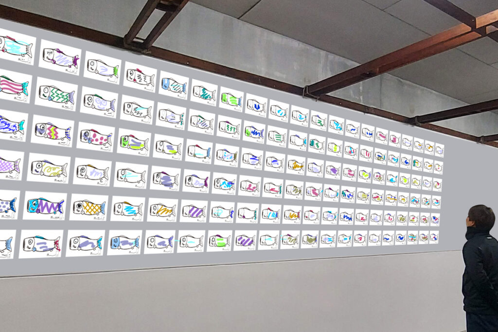 このイベントのさいごに、こうじょうのひとたちがじょうずにぬれたえを3つえらぶよ。そして、えらばれたひとのこいのえは、そのままらいねんつかえるこいのぼりとしてプレゼントするよ。(希望者のみ・2か月後のお渡し)